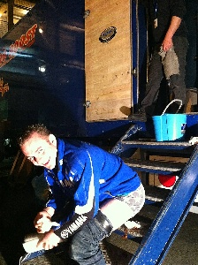 En vrai Grolandais et tradition oblige, pour remercier le Team Pro Boost de l’avoir aidé à gagner cette première course, il a comme le veut la coutume Grolandaise, chié sur les marches du camion en guise de remerciement…